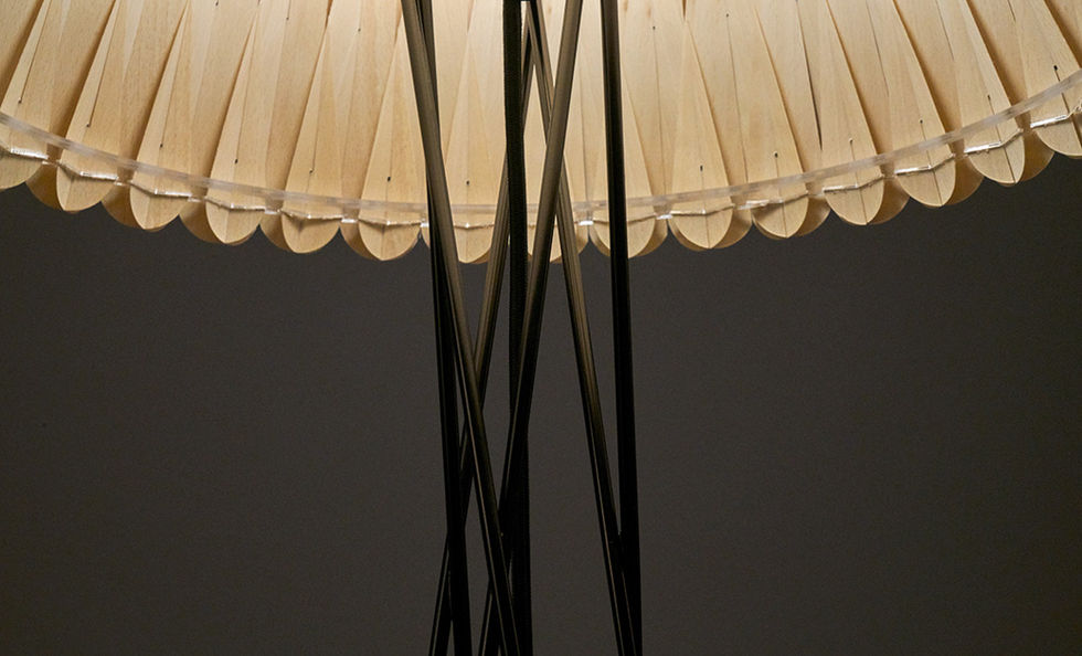 Designed by Ray Power, Lola showcases the designer’s ability to create imaginative three-dimensional forms. Lola is a conical lamp with an intricate geometric pattern. A veritable labour of love, Lola’s shape went through many iterations, drawings and prototypes, before arriving at the finished form. A particularly piquant Spanish name, Lola is very much alive, sensuous, and intriguing. An avant-garde lamp, Lola’s complex woven veneer construction is beautifully accentuated when lit.